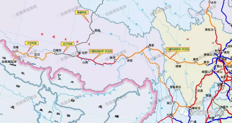 中尼铁路日喀则至吉隆段与《中长期铁路网规划》中的新藏铁路共线,是“十三五”时期的规划研究项目,实施后将与新藏铁路、川藏铁路共同构成我国西部和西南沿边铁路通道,促进西藏与内地实现融合发展,并为加快构建跨喜马拉雅立体互联互通网络奠定坚实基础。