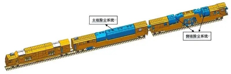 铁路道床积尘长期困扰重载铁路运输,影响道床弹性、隧道排水、轨道电路特性、电气设备寿命,严重影响着铁路设备维护及运输安全。TX-100Ⅱ铁路道床吸污车是为运煤铁路专线清理隧道内沉积煤粉而研发的一款大型养路机械,由朔黄铁路公司联合铁建高新装备股份有限公司、铁道科学研究院集团有限公司、中煤科工集团重庆研究院有限公司等多家装备制造及科研机构进行协同攻关,成功研发出具有自主知识产权的道床吸污装备。在研发过程中,煤科重庆研究院负责该装备核心部分——吸尘除尘系统、煤尘爆炸防护系统、作业环境监测报警系统等的研究、设计和制造。