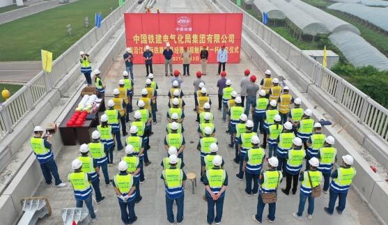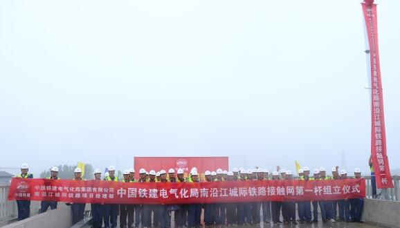 铁建电气化局集团南沿江项目部在施工现场举行了简短而隆重的组立仪式。据了解,南沿江城际铁路位于江苏省境内、长江下游南岸,呈西东走向,线路起于南京市江宁区,途经镇江市、常州市、无锡市、苏州市,止于苏州太仓市,线路正线长度278.53km,全路共设7座车站。建成通车后对完善长三角地区城际铁路网布局、缩小江苏沿江城市间的时空距离、促进南沿江地区经济社会发展都有着十分重要的意义。