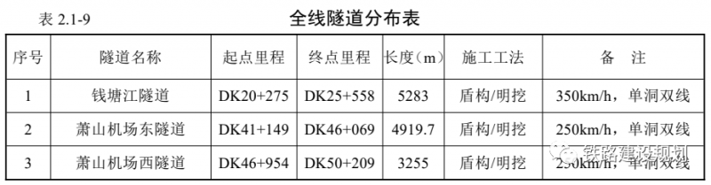 新建隧道3座,为钱塘江隧道、萧山机场东隧道、萧山机场西隧道,合计长度13.457km。正线有大中桥8座-56002.86延米,杭州南至萧山机场连接线有大中桥6座-13133.89延米。新建钱塘动车存车场1处;新建钱塘综合维修车间兼工区1处。新建220kV牵引变电所2座(桐乡变、义南变),对既有220kV萧山2#牵引变电所扩容改造。