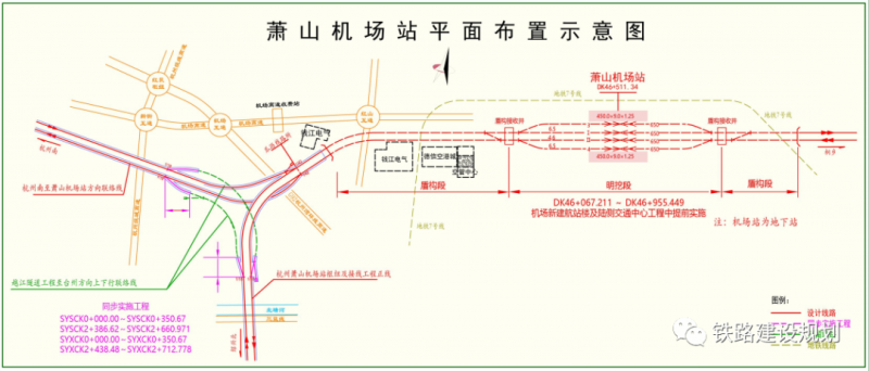 萧山机场铁路线路平面示意图▼