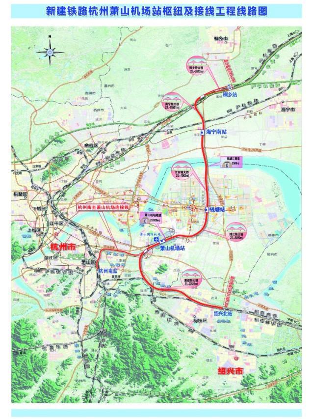 规划中的杭州机场高铁全长约85公里,途经嘉兴桐乡市、海宁市,杭州钱塘区、萧山区及绍兴柯桥区,其中正线长约72公里,萧山机场至杭州南站联络线长约13公里。全线新设海宁南站、钱塘站、萧山机场站,改扩建桐乡站,接入绍兴北站,投资总额约382亿元。