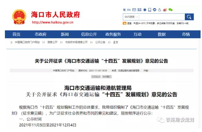 推进海口至三亚铁路前期研究,打造海口-三亚通勤交通圈,全面实现全岛联动发展。建设完善高速公路网。续建并建成海口绕城公路美兰机场至演丰段公路、G15/G75高速公路海口段、G360文昌至临高公路(海口段),新建G98环岛高速海口至儋州段扩容工程、G98环岛高速海口段扩容工程,实现与全岛所有市县的高速公路直通,市域机场、主要港区实现高速公路直通。优化提升高速公路服务水平,实施G98环岛高速海口至博鳌段改扩建工程。优化提升高速公路出入口能力,推进高速公路互通新改建工程建设,实施G9811高速公路K15+500互通式立交新建工程,做好G98海口绕城高速滨江互通新建工程、G360文临高速美颖互通新建工程以及G98环岛高速观澜湖互通改造工程的前期研究工作。推进通用航空发展。加快发展低空旅游,推进万绿园低空基地、西海岸低空基地等的建设。健全通用航空公共服务体系,满足应急救援、警务飞行、城市管理等服务需求。