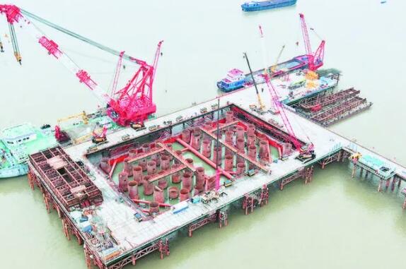 面积相当于13个篮球场的超大围堰顺利下沉到位