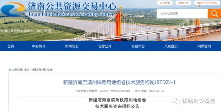 2月23日,《新建济南至滨州铁路用地组卷技术服务咨询招标公告》及《新建济南至滨州铁路工程使用林地可行性报告编制服务招标公告》发布,标志着济滨高铁项目初步设计批复相关前期工作正加快推进,年内有望开工建设。