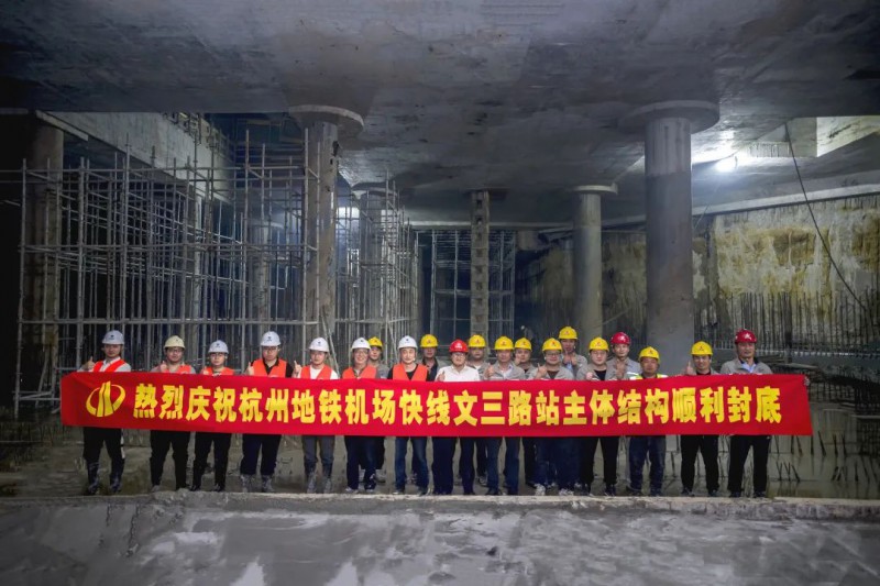 4月12日,文三路站在完成车站最后一块底板浇筑之后,正式完成主体结构施工,至此,杭州地铁三期建设所有车站主体结构全面完工。