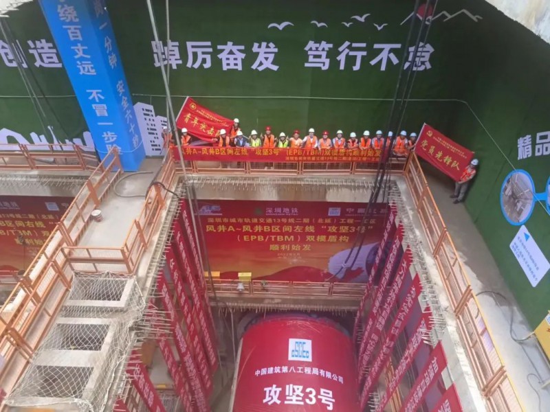 深圳地铁13号线二期(北延)项目一工区风井A~风井B区间左线“攻坚3号”盾构顺利始发,这是上屋站~市中医院站区间始发的第三台盾构机,标志着项目进入盾构施工的新阶段。