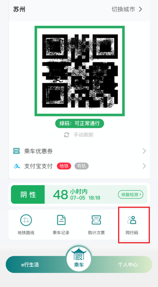 苏州轨道集团提醒,“苏e行”同行码仅可在苏州轨道交通使用;使用“苏e行”同行码的乘客需另行出示健康码,核验通过后方可进站。