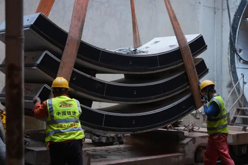 在东上泽站可以看到,弧形的预制管片整齐分层叠放在地面施工区域内,盾构机已经深入到隧道内部作业,两条地铁隧道随之延伸舒展成型。于今年6、7月份相继始发的两台盾构机正在构筑着“地下长龙”。