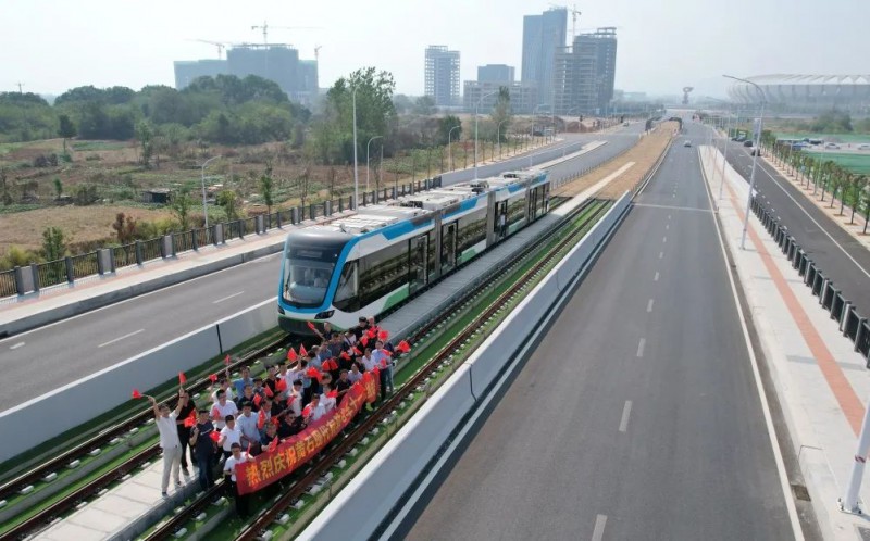 10月1日,黄石现代有轨电车顺利实现全线试车。