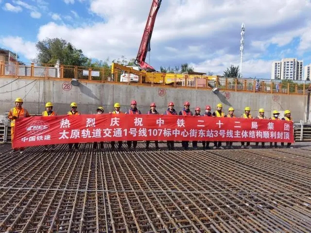 10月9日下午,太原地铁1号线中心街东站主体结构全面封顶,标志着太原地铁1号线首个换乘车站全面封顶。
