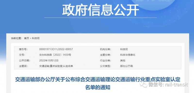 据交通运输部10月12日消息,根据《交通运输行业重点实验室管理办法》,经自主申报、相关单位推荐和专家评审,交通运输部同意将北京交通大学等4家单位认定为综合交通运输理论交通运输行业重点实验室,现予以公布。
