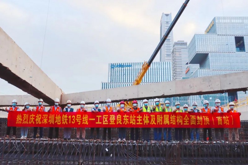 深圳地铁 13号线一期 人才公园站 D出入口主体结构顺利封顶,这也标志着全线首个车站实现全部附属工程主体结构全面封顶。
