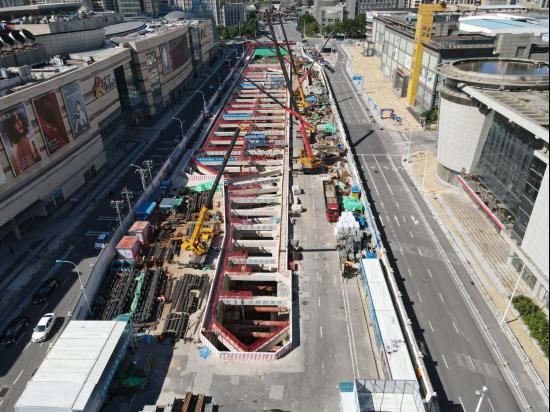 为确保工程节点,2022年春节期间,项目全体人员坚守岗位,加班加点完成鼓楼站南侧基坑第一道冠梁砼支撑施工。在3月中旬至6月,项目仅用时2个半月完成土方开挖10万余方,鼓楼站首段基坑见底,项目正式进入主体结构施工阶段。在施工过程中,项目始终坚持高标准建设、高质量管理、高效率推进的原则,不断提升现场管理水平,严控施工质量,确保车站南侧主体结构施工顺利完成。