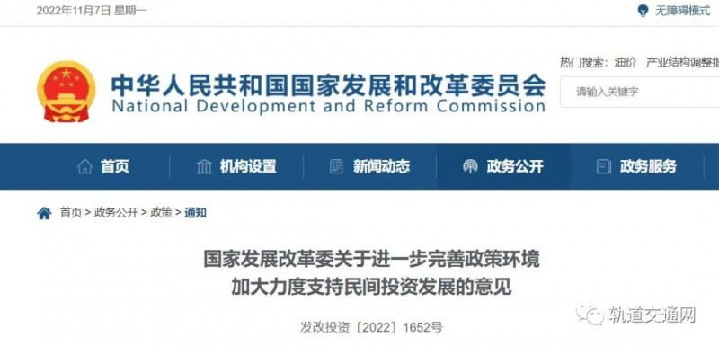 11月7日,国家发改委官网发布了关于进一步完善政策环境加大力度支持民间投资发展的意见。
