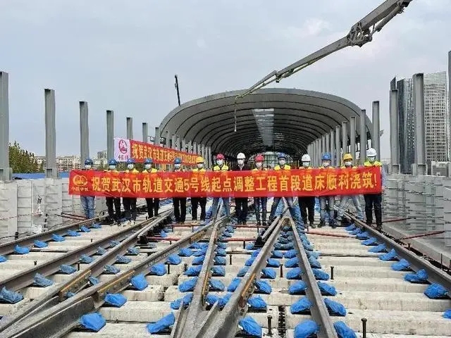 11月12日上午10点,武汉市轨道交通5号线二期工程交叉渡线轨排顺利浇筑,标志着该线正式进入铺轨阶段,同时也意味着距离10万大学生期盼已久的5号线二期工程建成又近了一步。