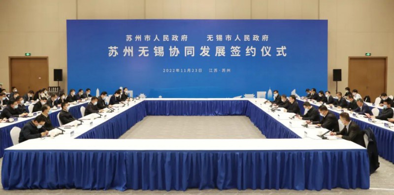 11月23日下午,苏州无锡签署协同发展战略合作协议和共同推进交通基础设施互联互通战略合作协议,更高质量落实长三角一体化发展战略、更大步伐推进扬子江城市群建设、更深层次密切两市同枝真情,凝聚力量、汇聚合力,在全面推进中国式现代化江苏新实践中共立潮头。