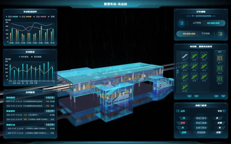 智慧车站管控平台通过图像智能识别、物联网智能诊断等方式获取全息感知数据,通过大数据算法、人工智能学习等技术对数据进行挖掘分析和综合利用,建立起场景化、智能化、人性化的智慧管理体系。该系统不仅可以将数据信息展示在综合界面上,也可以集中控制,统一调配,实现了涵盖三维可视化、一键开关站、智能客服中心、人脸识别过闸、智能安检等智慧化功能。