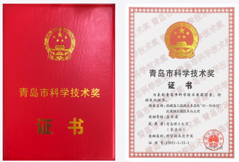 12月8日,青岛市地铁一号线有限公司参与的《低碳海工混凝土多层级“耐—防协同”抗腐蚀关键技术与应用》在2021年度市科学技术奖评选中,获得青岛市科技进步一等奖。