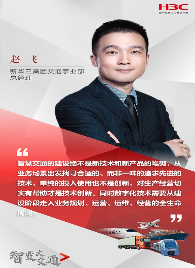 新华三集团交通事业部总经理赵飞在近日接受媒体访谈中提到:智慧交通的建设绝不是新技术和新产品的堆砌,从业务场景出发找寻合适的、而非一味的追求先进的技术,单纯的投入使用也不是创新,对生产经营切实有帮助才是技术创新。同时数字化技术需要从建设阶段走入业务规划、运营、运维、经营的全生命周期。