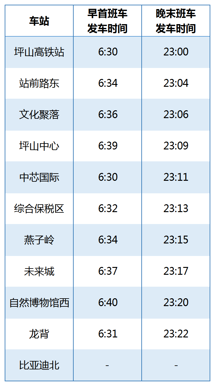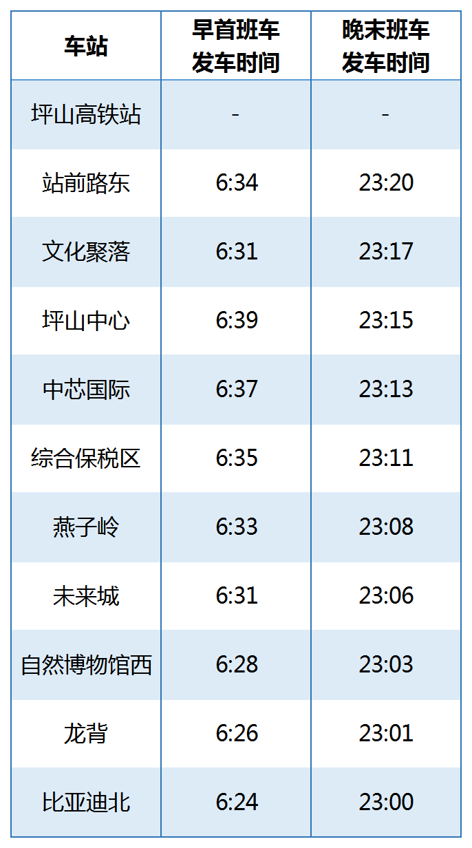 (以下为正式运营时间及首末班车时刻表)