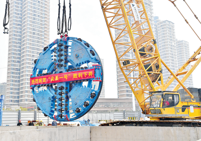 1月1日,武汉地铁12号线博览路站施工现场,一派火热施工景象,随着重约60吨的蓝色刀盘缓缓吊装至18米深的井底,负责地下掘进的“尖兵一号”盾构机成功完成下井,预计今年2月向国博中心南站始发。