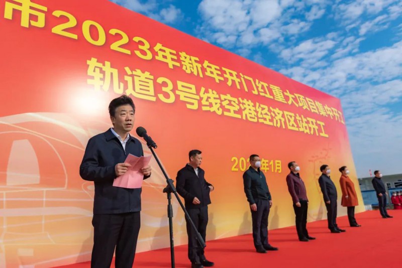 1月8日上午,厦门市2023年新年“开门红”重大项目集中开工暨轨道3号线空港经济区站开工活动,在翔安新机场片区施工现场举行。市委常委、宣传部部长吴子东,市轨道交通建设指挥部常驻副总指挥梁向阳,厦门轨道集团领导陈卫文、陈晓坚、贺斯进,以及市、区相关部门领导和参建单位代表共同参加了本次开工活动。