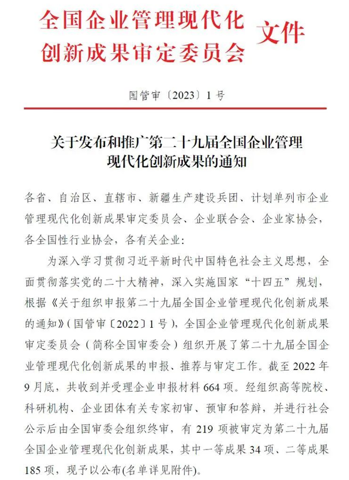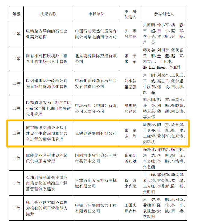 近日,全国企业管理现代化创新成果审定委员会发布《关于发布和推广第二十九届全国企业管理现代化创新成果的通知》(国管审〔2023〕1号)。无锡地铁集团申报的《城市轨道交通企业基于建设全生命周期和经营全过程的数字化管理》荣获第二十九届全国企业管理现代化创新二等成果。