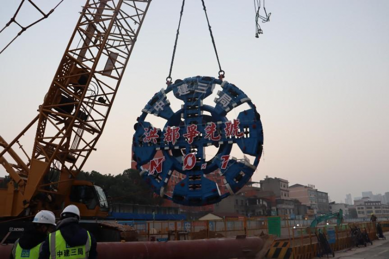 1月10日下午,随着“洪都争先号No.1”盾构机刀盘的吊装到位,南昌轨道交通2号线东延线首台盾构机顺利“下井”拼装,为年后沈桥站~殷王站区间盾构始发吹响了冲锋的号角。