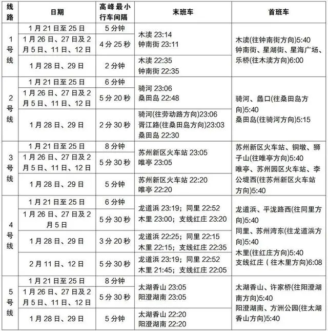 为保障春运暨春节元宵节期间市民乘客出行安全便捷,苏州轨道交通计划对春运期间线网运输计划进行调整。
