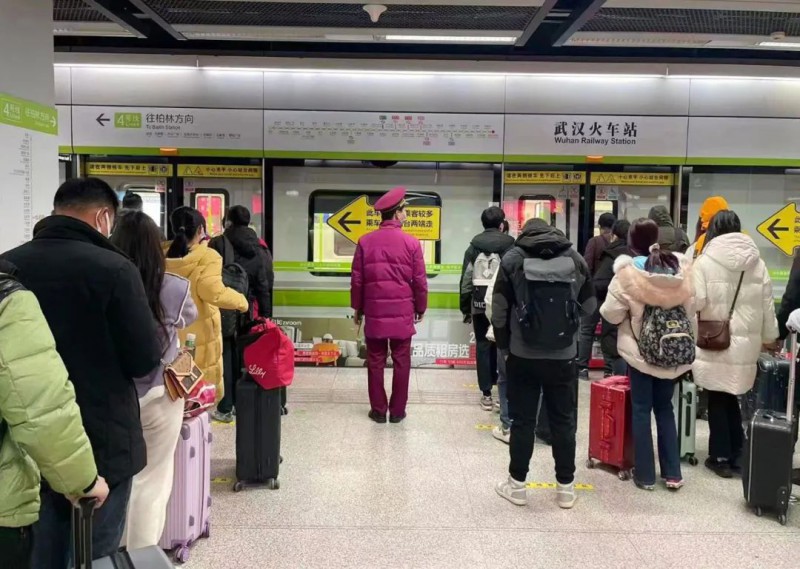 “换乘佛祖岭、柏林方向乘客,可以前往步梯下楼候车”“请在站台门两侧依次候车”“车上乘客请往中部走”……1月31日早高峰时段,武汉地铁2、4号线换乘站中南路站值班站长廖汝琴带领10余名员工不停引导乘客安检、进站,候车秩序井然,忙而不乱。