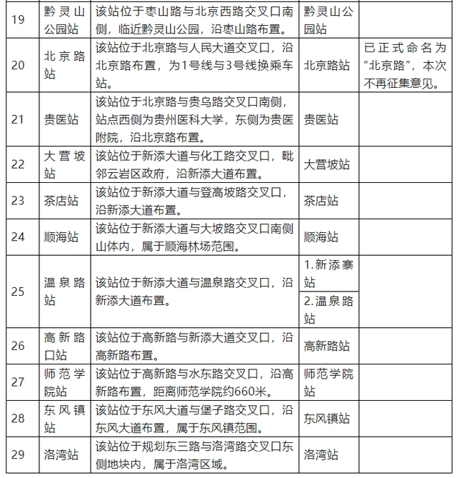 表1 贵阳市轨道交通3号线一期车站运营站名推荐表