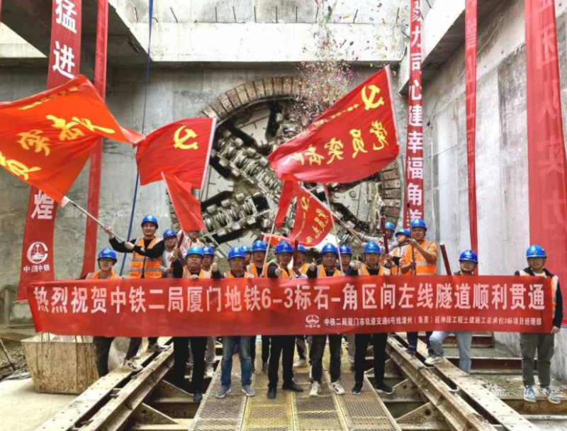 2 月 19 日,伴随着盾构机刀盘的阵阵轰鸣声,石美站 ~ 角江路站区间左线盾构机从角江路站接收井预留洞门缓缓破土而出,这标志着由中铁二局城通公司承建的厦门地铁 6-3 标石角区间左线盾构顺利贯通,为厦门地铁 6 号线全线建成奠定了坚实基础。