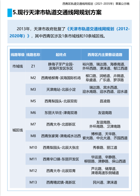天津西青区轨道交通线网规划(2021—2035年)草案公示
