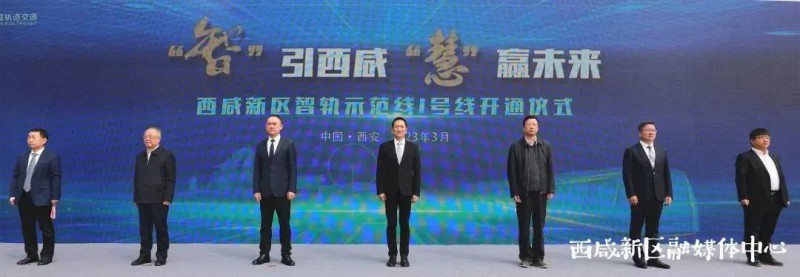 西咸新区党工委书记杨仁华出席并宣布智轨开通,西安市交通运输局党组成员、总工程师杨党校,中车株洲所副总经理陈剑,中铁电气化局副总经理李争科,新区领导梁东、陈晓雄参加。