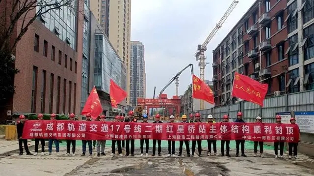3月30日,记者从中铁十一局集团有限公司获悉,目前成都轨道交通17号线红星桥站主体结构顺利封顶,标志着全线最深车站完成主体结构施工工作。