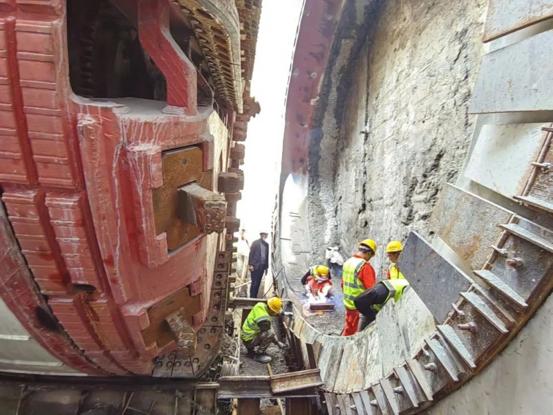“始发车站距离长江约500米,整个区间均为长江一级阶地,掘进过程中还要上跨5号线地铁隧道、下穿巡司河排水箱涵,难度较大。”李江龙介绍,例如巡司河排水箱涵底部距离11号线隧道顶部约2.25米,为确保盾构顺利穿越,项目部多次组织专家论证,优化方案,确定以管棚加固的方式对巡司河箱涵进行加固保护后再进行盾构穿越。