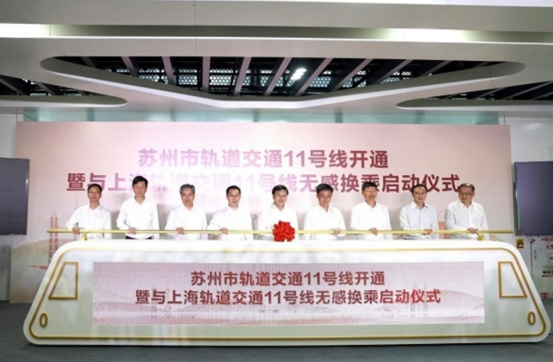 6月24日上午,苏州市轨道交通11号线开通暨上海轨道交通11号线无感换乘启动仪式在花桥站举行。这是国内首条与上海轨道交通线网络对接的线路,也是苏州首条市域轨道交通线路。