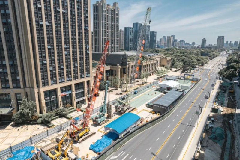 世纪大道站位于临平区世纪大道与星河南路交叉口,为3号线、18号线换乘站,是杭州地铁四期工程首个正式进入主体围护结构施工的车站。