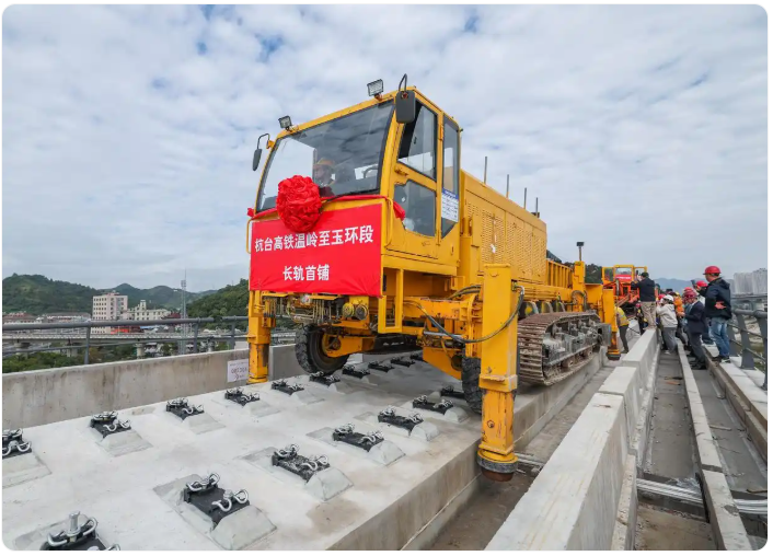 11月5日,杭台高铁温岭至玉环段正式启动铺轨作业,项目从土建施工阶段全面转入轨道工程建设阶段。